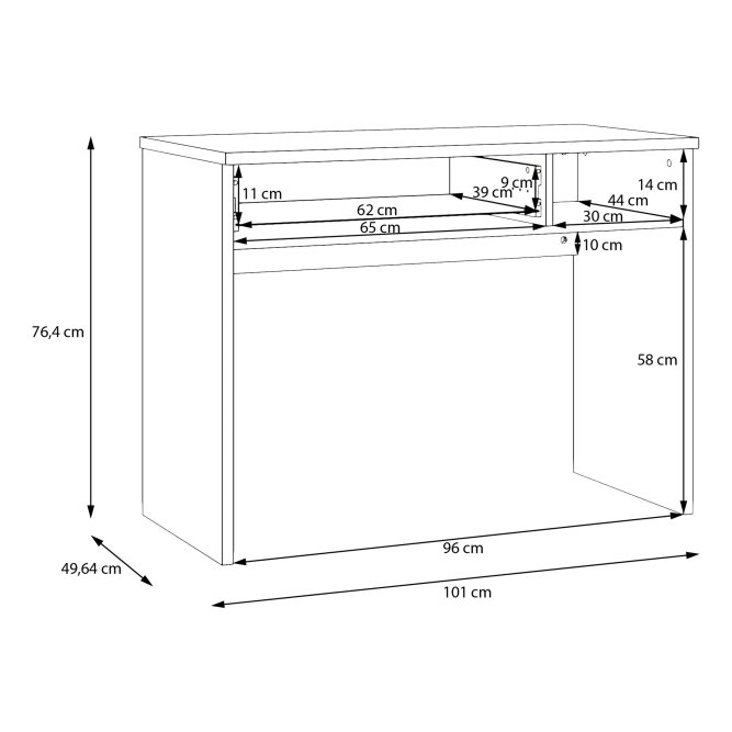 - Funkcjonalne biurko o wymiarach: szerokość 101 cm x wysokość 75.5 cm x głębokość 49.6 cm