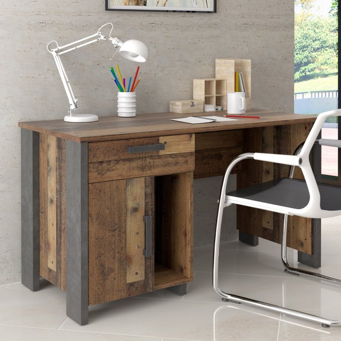 Biurko vintage loft 130x60 cm z szufladą i szafką CLIF