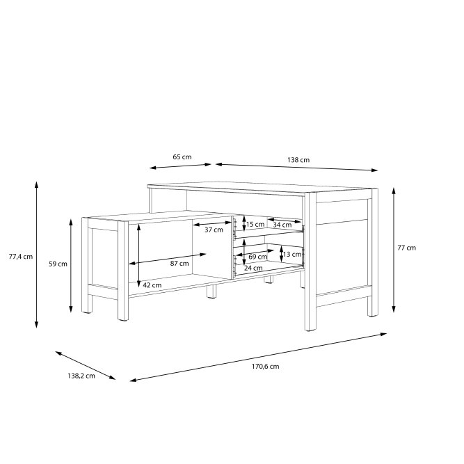 - Szeroki blat zapewnia odpowiednio dużo miejsca do komfortowej pracy, nauki