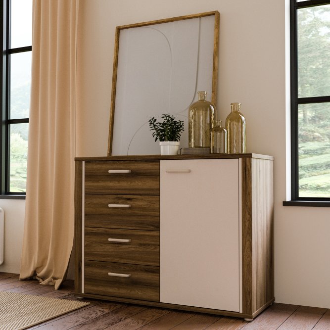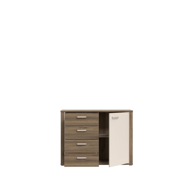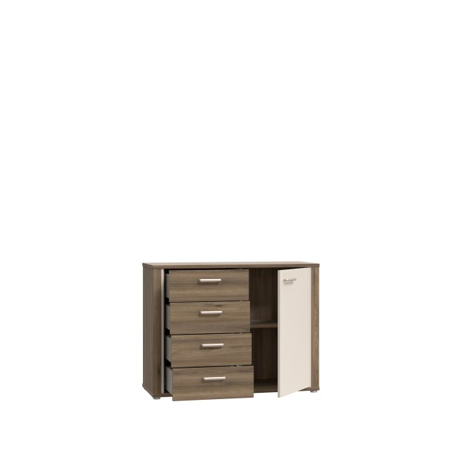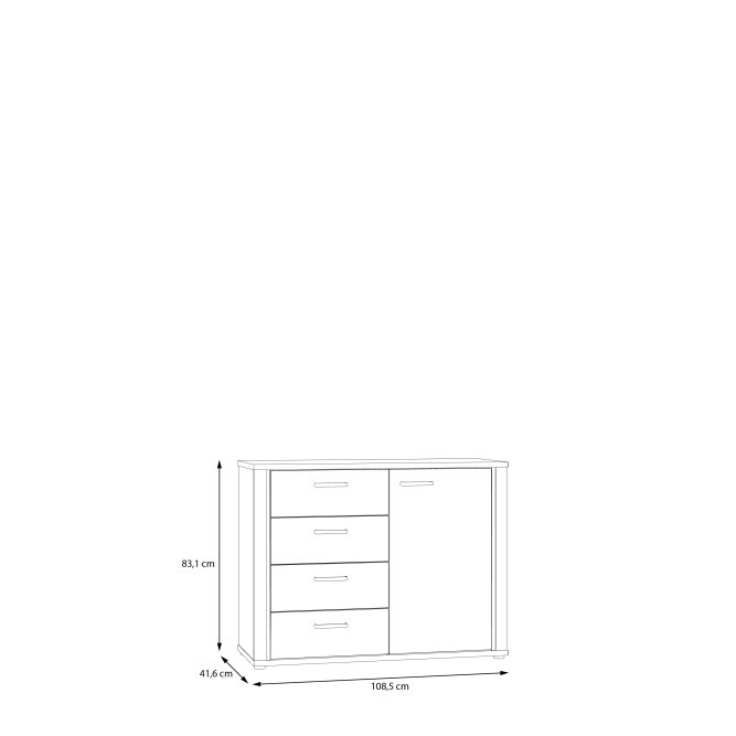 Komoda BACCIO w stylu MODERN świetnie sprawdzi się w takich pomieszczeniach jak Pokój dzienny/Jadalnia. Szafki i szuflady zapewniają dużo miejsca do przechowywania. W szufladach zmieścisz drobne przedmioty i dokumenty, a w szafce ukryjesz większe rzeczy. Blat jest dobrym miejscem na telewizor, wyeksponowanie zdjęć lub ulubionych dekoracji. Komoda stworzy spójną aranżację z innymi meblami z kolekcji BACCIO.