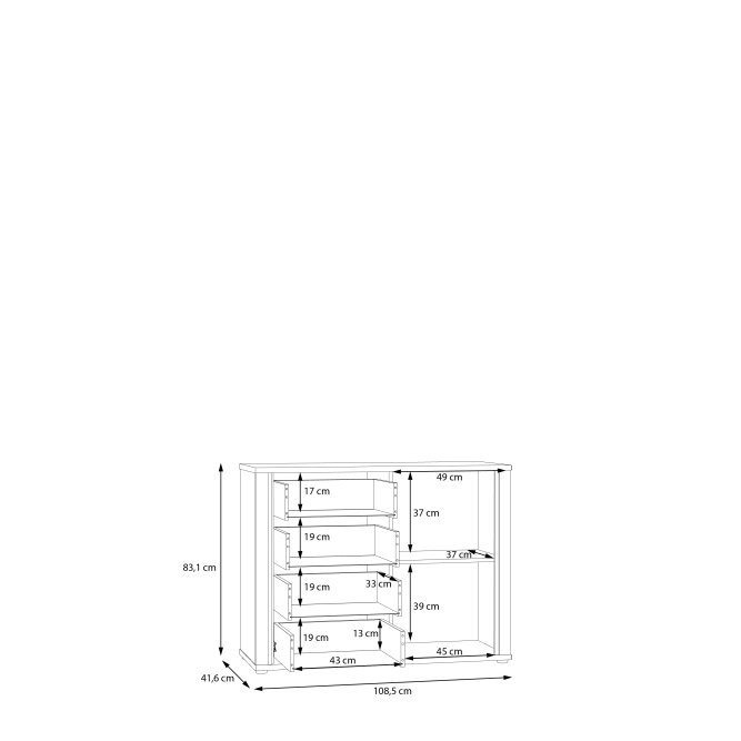 - Mebel o wymiarach: szerokość 197,1 cm x wysokość 91,9 cm x głębokość 41 cm z wieloma opcjami przechowywania rzeczy