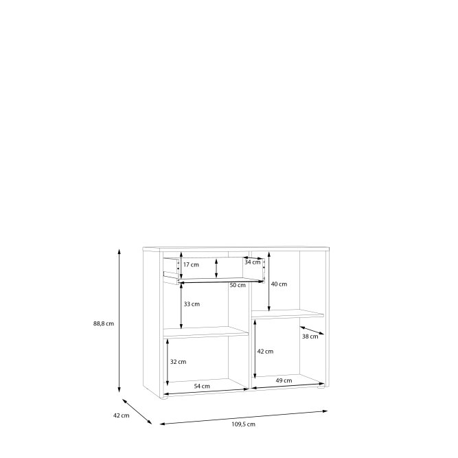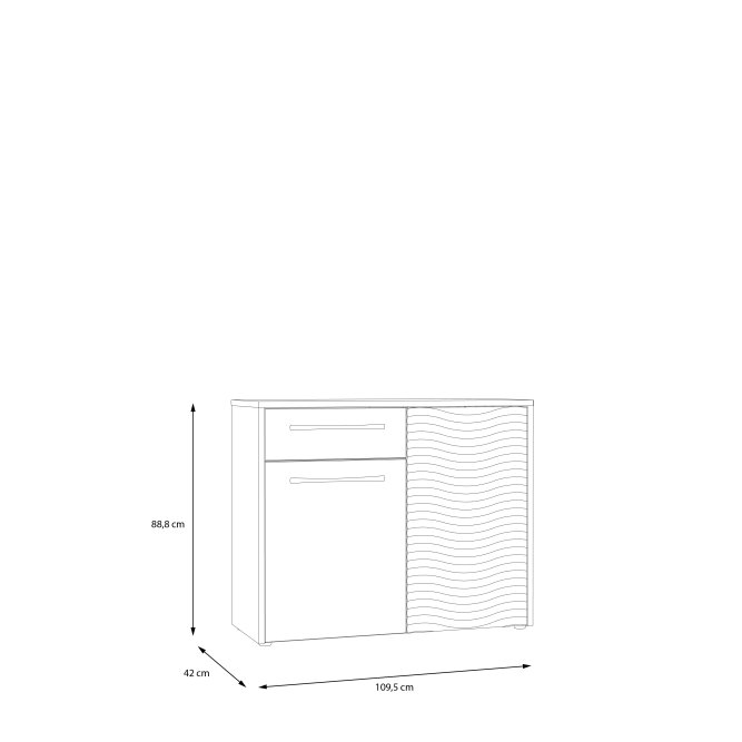 - Mebel o wymiarach: szerokość 109,5 cm x wysokość 88,8 cm x głębokość 42 cm