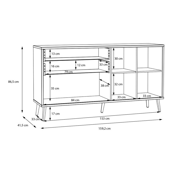 - Wymiary: szerokość 159,2 cm, wysokość 86,5 cm, głębokość 41,5 cm