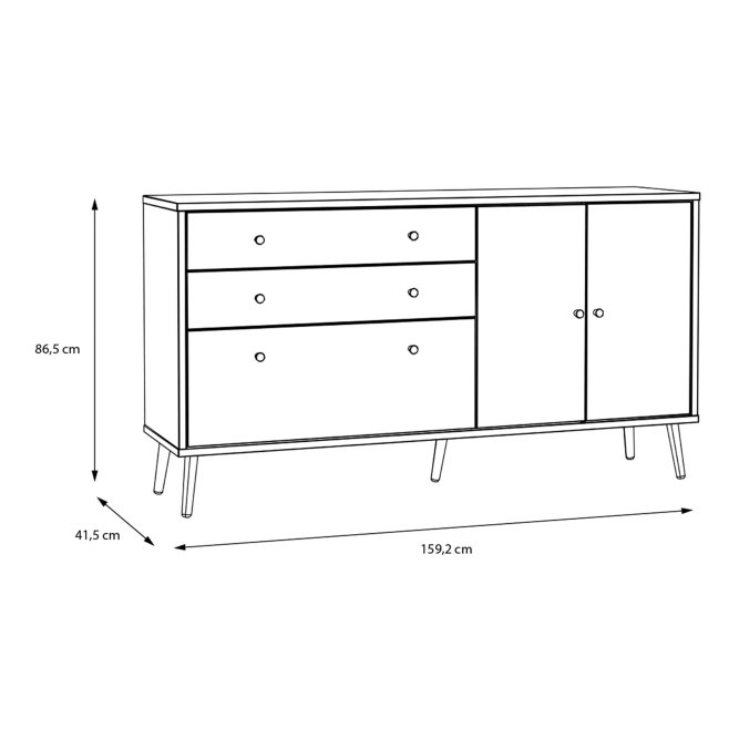 - Wymiary: szerokość 159,2 cm, wysokość 86,5 cm, głębokość 41,5 cm