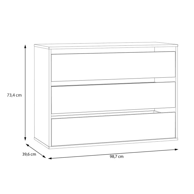 Komoda wewnętrzna rozbuduje możliwości Twojej szafy oraz zapewni odpowiednią przestrzeń do przechowywania. 3 pojemne szuflady pomogą Ci pomieścić mnóstwo przedmiotów, jak bielizna, drobna garderoba i różnego rodzaju akcesoria.Komoda z innymi meblami z oferty stworzą spójną aranżację wnętrza takiego jak sypialnia.