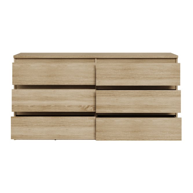 Klasyczna komoda w dekorze Dąb Sonoma doskonale sprawdzi się w salonie, jadalni lub garderobie. Jest doskonałym rozwiązaniem, kiedy potrzebny jest łatwy i wygodny dostęp do przechowywanych rzeczy. Mebel ten można łączyć z innymi meblami z tej kolekcji.