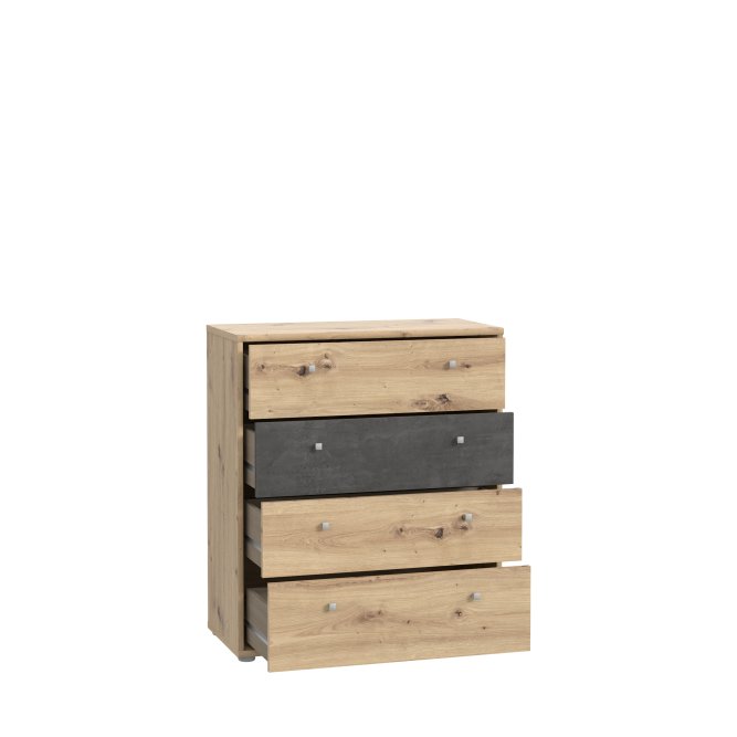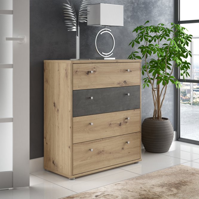 Pojemna komoda w klasycznym stylu doskonale wkomponuje się we wnętrze salonu, sypialni, jadalni czy przedpokoju.Cztery pojemne suflady doskonale sprawdzą się do przechowywania ubrań, bielizny i nie tylko.