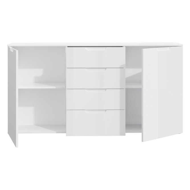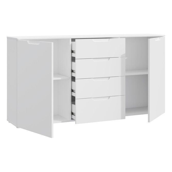 Praktyczna i elegancka komoda w stylu nowoczesnym wykonana w Białym dekorze. Posiada odpowiednio dużo miejsca do przechowywania. Doskonale sprawdzi się w sypialni, salonie czy pokoju dziennym.