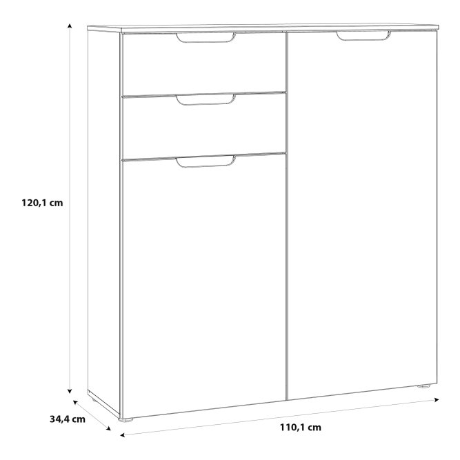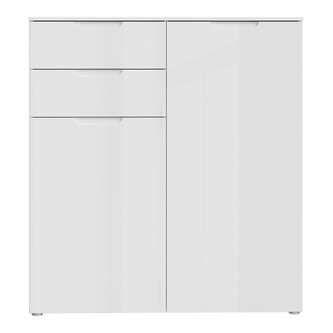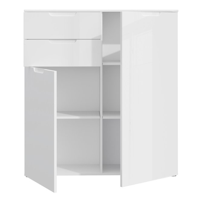 Praktyczna i elegancka komoda w stylu nowoczesnym wykonana w Białym dekorze. Posiada odpowiednio dużo miejsca do przechowywania. Doskonale sprawdzi się w sypialni, salonie czy pokoju dziennym.