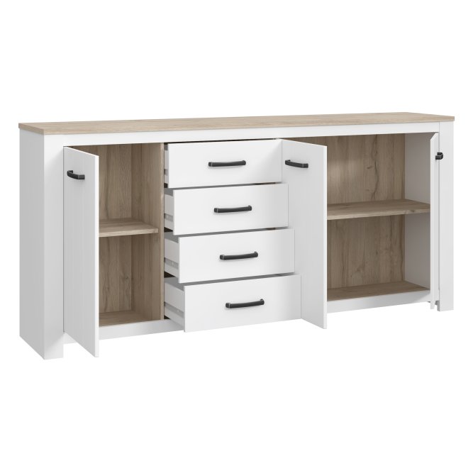 Połączenie dekoru Biały Mat z Dębem Bianco nadaje komodzie lekkości oraz pozwoli na dopasowanie jej do każdej aranżacji wnętrz