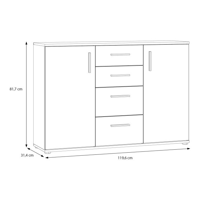 - Mebel o wymiarach: szerokość 119,6 cm x wysokość 81,7 cm x głębokość 31,4 cm