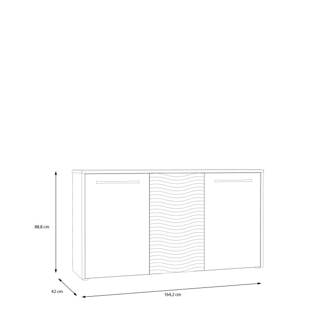 - Mebel o wymiarach: szerokość 164,2 cm x wysokość 88,8 cm x głębokość 42 cm
