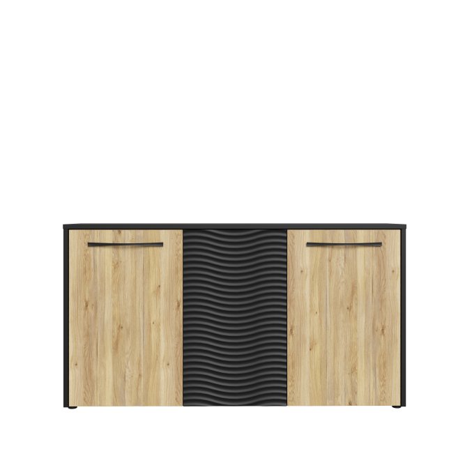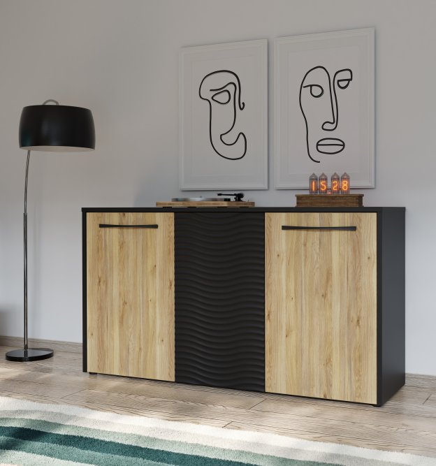 - Komoda w efektowym połączeniu dekorów Czarny / Dąb Mauvella / Terra
