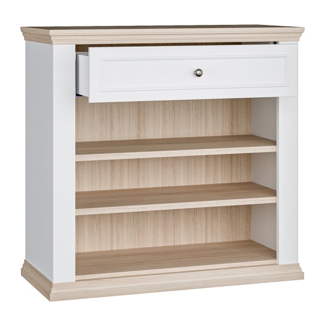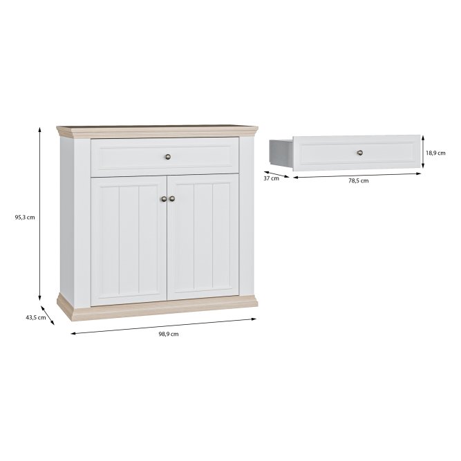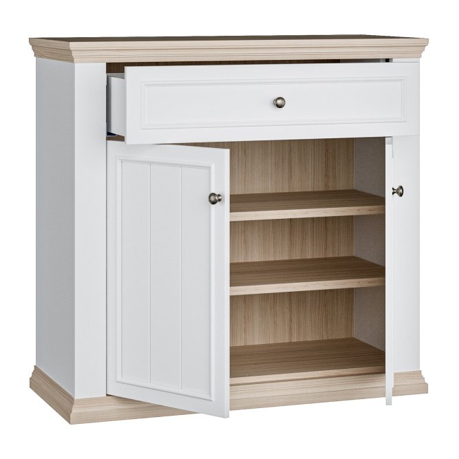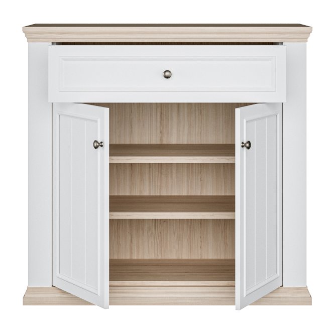 Komoda z kolekcji PONTYPOOL dopełni każde mieszkanie urządzone w stylu PROVENSAL. Mebel posiada szuflady (1) i półki (2), dzięki czemu zmieścisz wszystkie niezbędne przedmioty. Na blacie komody wyeksponujesz zdjęcia, kwiaty i pamiątki rodzinne, a całą aranżację wnętrza możesz dodatkowo uzupełnić o pozostałe elementy kolekcji PONTYPOOL.