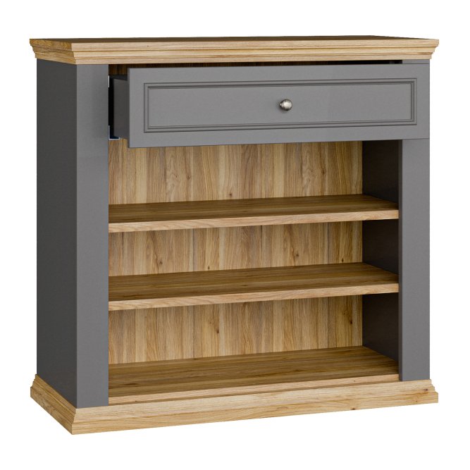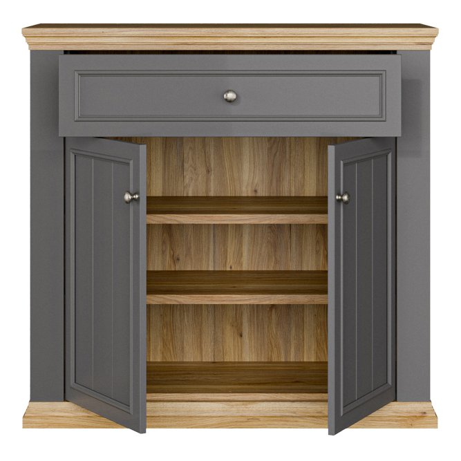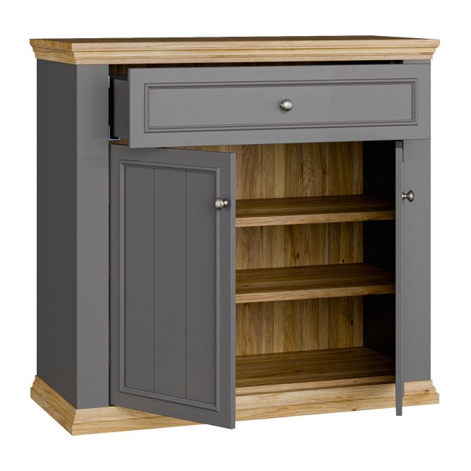 Komoda z kolekcji PONTYPOOL dopełni każde mieszkanie urządzone w stylu PROVENSAL. Mebel posiada szuflady (1) i półki (2), dzięki czemu zmieścisz wszystkie niezbędne przedmioty. Na blacie komody wyeksponujesz zdjęcia, kwiaty i pamiątki rodzinne, a całą aranżację wnętrza możesz dodatkowo uzupełnić o pozostałe elementy kolekcji PONTYPOOL.