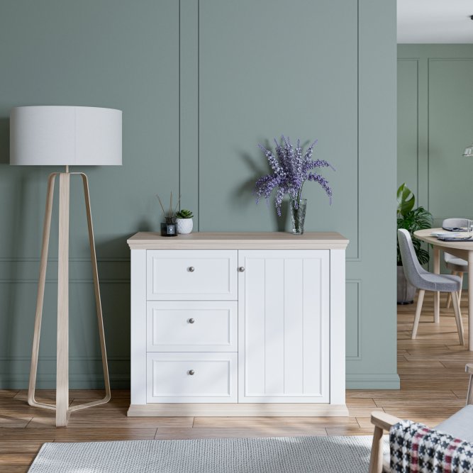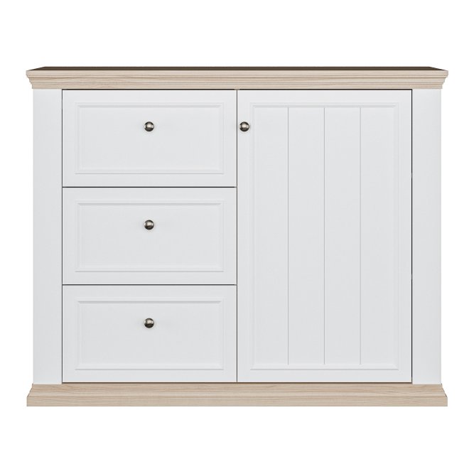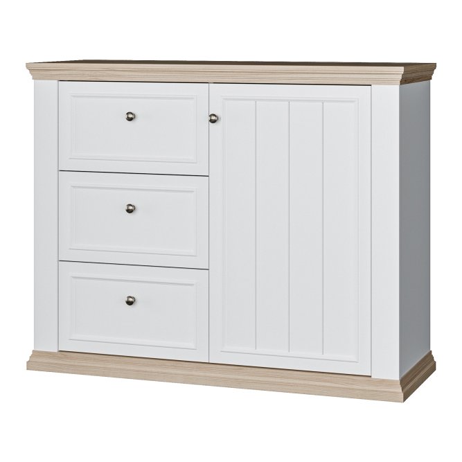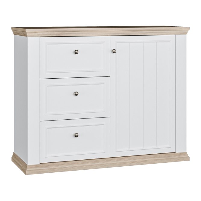 Komoda z kolekcji PONTYPOOL dopełni każde mieszkanie urządzone w stylu PROVENSAL. Mebel posiada szuflady (3) i półki (2), dzięki czemu zmieścisz wszystkie niezbędne przedmioty. Na blacie komody wyeksponujesz zdjęcia, kwiaty i pamiątki rodzinne, a całą aranżację wnętrza możesz dodatkowo uzupełnić o pozostałe elementy kolekcji PONTYPOOL.