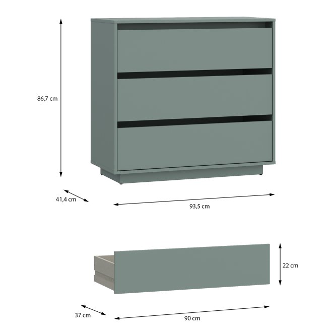 Komoda z kolekcji TAHOE dopełni każde mieszkanie urządzone w stylu MODERN. Mebel posiada szuflady (3), dzięki czemu zmieścisz wszystkie niezbędne przedmioty. Na blacie komody wyeksponujesz zdjęcia, kwiaty i pamiątki rodzinne, a całą aranżację wnętrza możesz dodatkowo uzupełnić o pozostałe elementy kolekcji TAHOE.