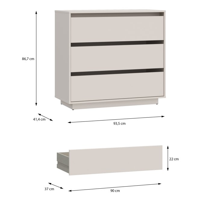 Komoda z kolekcji TAHOE dopełni każde mieszkanie urządzone w stylu MODERN. Mebel posiada szuflady (3), dzięki czemu zmieścisz wszystkie niezbędne przedmioty. Na blacie komody wyeksponujesz zdjęcia, kwiaty i pamiątki rodzinne, a całą aranżację wnętrza możesz dodatkowo uzupełnić o pozostałe elementy kolekcji TAHOE.