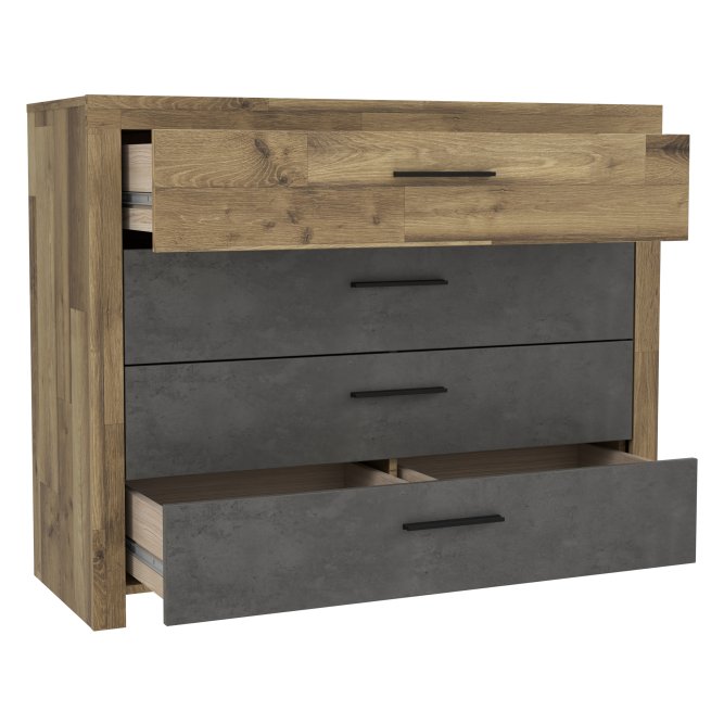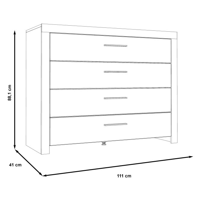 - Cztery szuflady z wewnętrznym podziałem gwarantujące utrzymanie porządku i komfort w przechowywaniu rzeczy osobistych