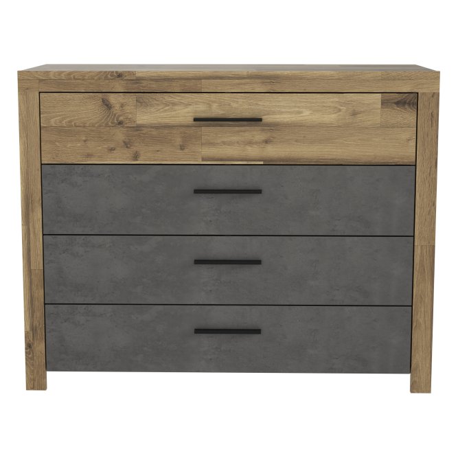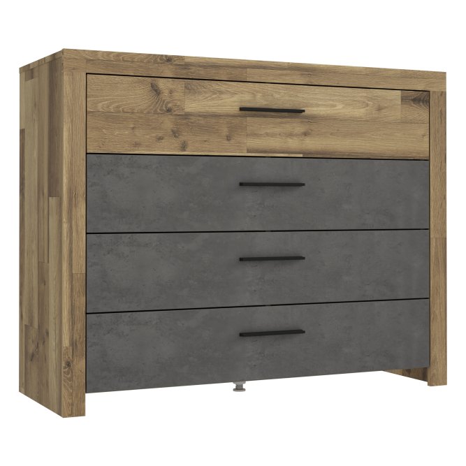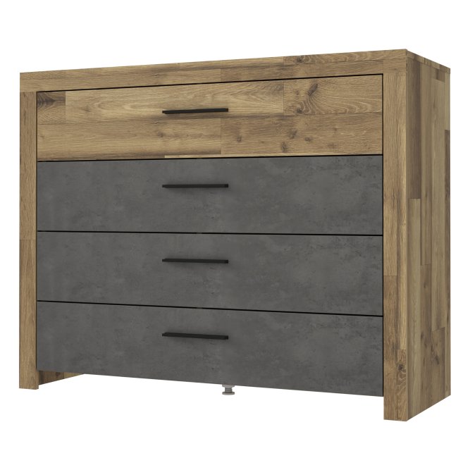 Gustowna, minimalistyczna komoda będzie idealnym dopełnieniem aranżacji sypialni lub pokoju dziennego. Nie tylko zapewni funkcjonalną przestrzeń na przechowywanie przedmiotów codziennego użytku, ale także dzięki swojemu szlachetnemu wyglądowi doda pomieszczeniu nutkę artyzmu.
