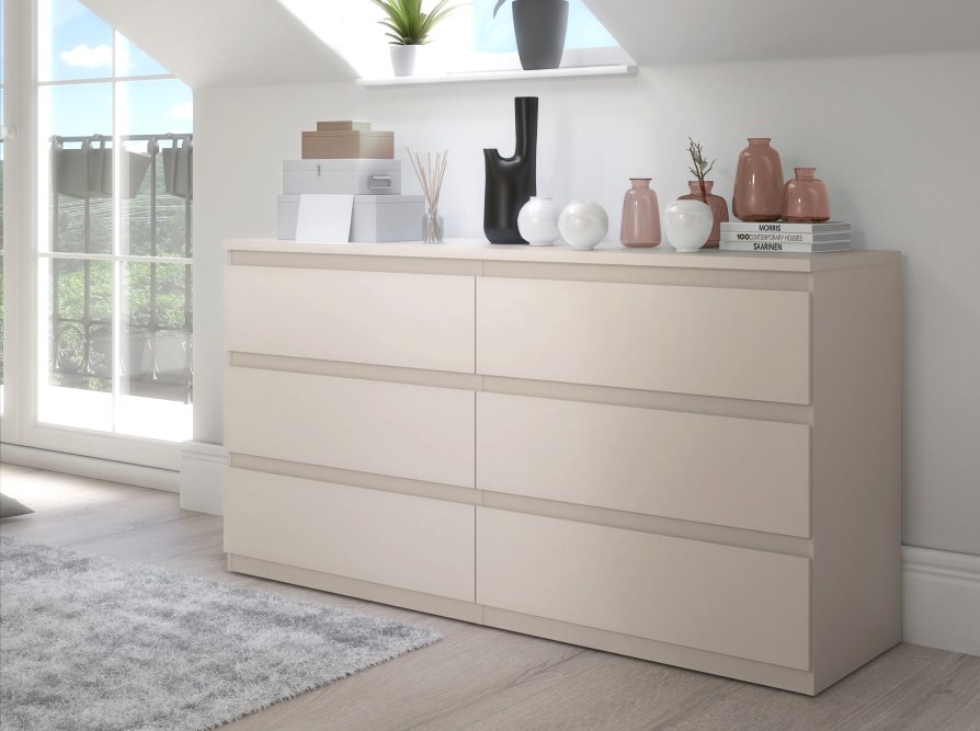 Komoda z kolekcji LISSON dopełni każde mieszkanie urządzone w stylu MODERN. Mebel posiada szuflady (6), dzięki czemu zmieścisz wszystkie niezbędne przedmioty. Na blacie komody wyeksponujesz zdjęcia, kwiaty i pamiątki rodzinne, a całą aranżację wnętrza możesz dodatkowo uzupełnić o pozostałe elementy kolekcji LISSON.