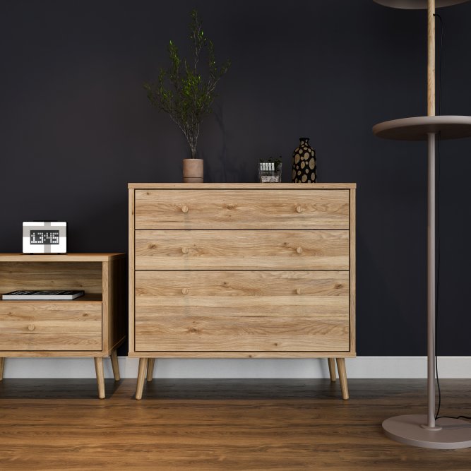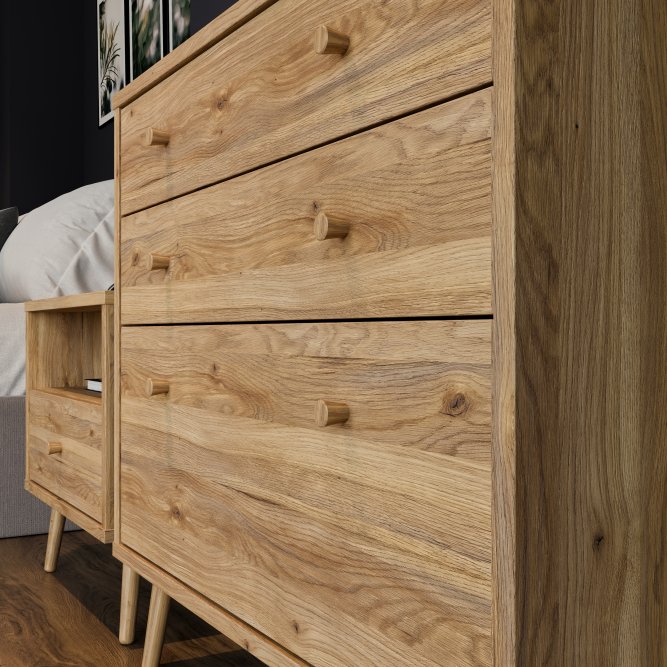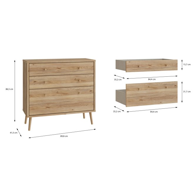 Komoda z kolekcji HARLLSON dopełni każde mieszkanie urządzone w stylu MODERN. Mebel posiada szuflady (3), dzięki czemu zmieścisz wszystkie niezbędne przedmioty. Na blacie komody wyeksponujesz zdjęcia, kwiaty i pamiątki rodzinne, a całą aranżację wnętrza możesz dodatkowo uzupełnić o pozostałe elementy kolekcji HARLLSON.