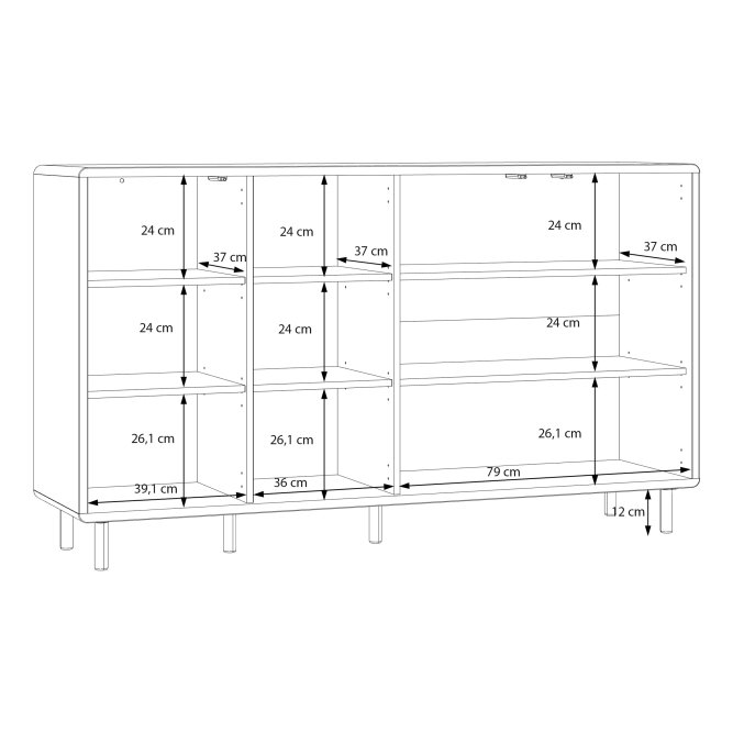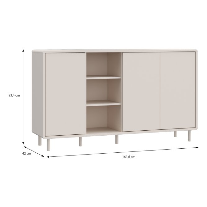 - Mebel o wymiarach: szerokość 161.6 cm x wysokość 93.4 cm x głębokość 42 cm, z różnymi opcjami przechowywania