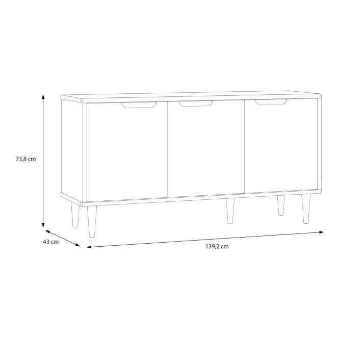 - Wymiary: szerokość 139.2 cm, wysokość 73.8 cm, głębokość 43 cm