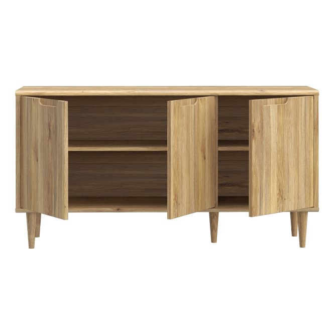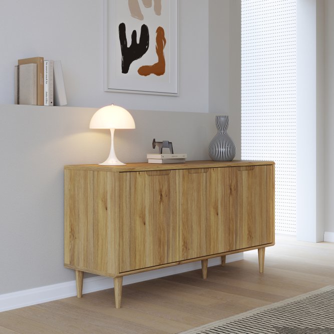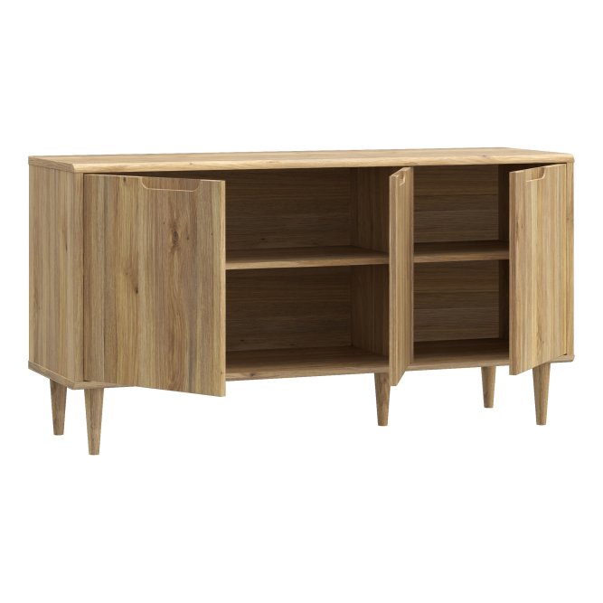 Składanie mebli jeszcze nigdy nie było tak proste i przyjemne! Komodę z kolekcji SHERBROOK złożysz do 10 raz szybciej niż model z tradycyjnymi okuciami, a dodatkowo nie będziesz potrzebować prawie żadnych narzędzi, ponieważ większość elementów łączy się ze sobą „na click”. Taką możliwość daje Easy Klix, innowacyjny system oparty na technologii Threespine ID®, który gwarantuje nie tylko wygodny montaż, lecz także demontaż. W razie przeprowadzki nie musisz się martwić, że po rozłożeniu komoda się zniszczy. Kolekcja SHERBROOKE jest przykładem na to, że design minionych dekad może inspirować i zachwycać! Meble stoją na wysokich, zwężających się ku dołowi nóżkach, które znajdziemy w kultowych modelach z lat 50. i 60. Również kolorystyka i prosta linia mebli, bez zdobień i ornamentów nawiązują do popularnych projektów z początków drugiej połowy XX wieku. Dla osób, które lubią otaczać się dobrym designem, a przy tym cenią prostotę i funkcjonalność, kolekcja SHERBROOKE będzie doskonałym wyborem. Komoda SHERBROOK to bardzo praktyczny i przydatny mebel w wielu pomieszczeniach – salonie, sypialni, jadali oraz holu. Wykonana jest w ciepłym dekorze Dąb Mauvella, który pozwala poczuć bliskość natury i stworzyć przytulny klimat w domu. Stoi na drewnianych wysokich nóżkach, które nie tylko dodają uroku i lekkości wnętrzu, lecz także ułatwiają utrzymanie porządku pod meblem. Komoda ma cztery wnęki na schowanie ubrań, dokumentów oraz innych przedmiotów, przydatnych w salonie, sypialni czy przedpokoju.