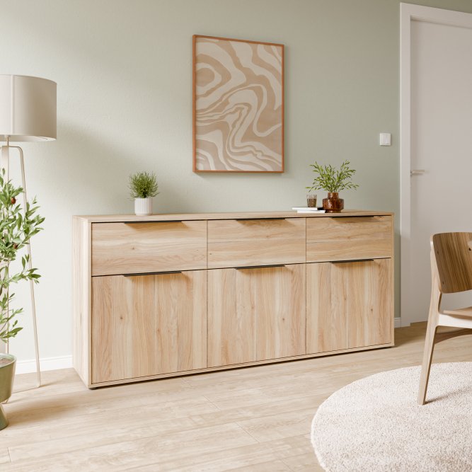 Komoda z kolekcji ORKNEY dopełni każde mieszkanie urządzone w stylu skandynawskim lub loftowym. Mebel posiada 3 szuflady i 3 zamykane szafki, dzięki czemu zmieścisz wszystkie niezbędne przedmioty. Na blacie komody wyeksponujesz zdjęcia, kwiaty i pamiątki rodzinne, a całą aranżację wnętrza możesz dodatkowo uzupełnić o pozostałe elementy kolekcji ORKNEY.