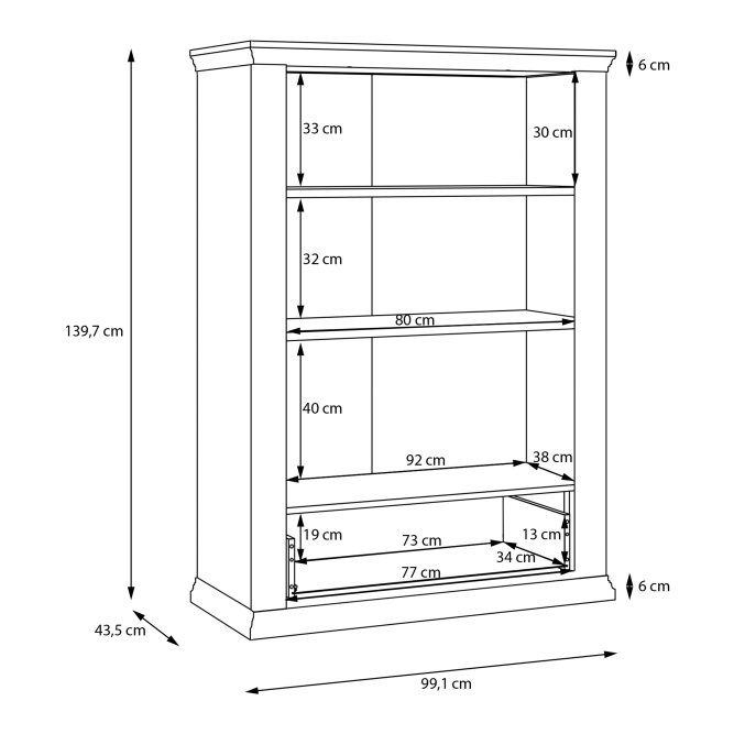 - Mebel o wymiarach: szerokość 98.9 cm x wysokość 140.2 cm x głębokość 43.5 cm, z różnymi opcjami przechowywania