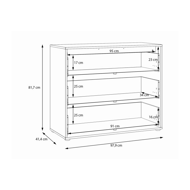 - Mebel o wymiarach: szerokość 97.9 cm x wysokość 81.7 cm x głębokość 41.4 cm, z różnymi opcjami przechowywania