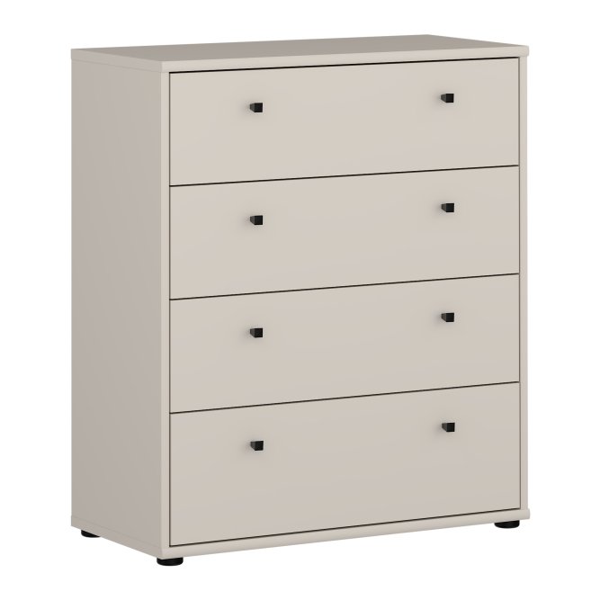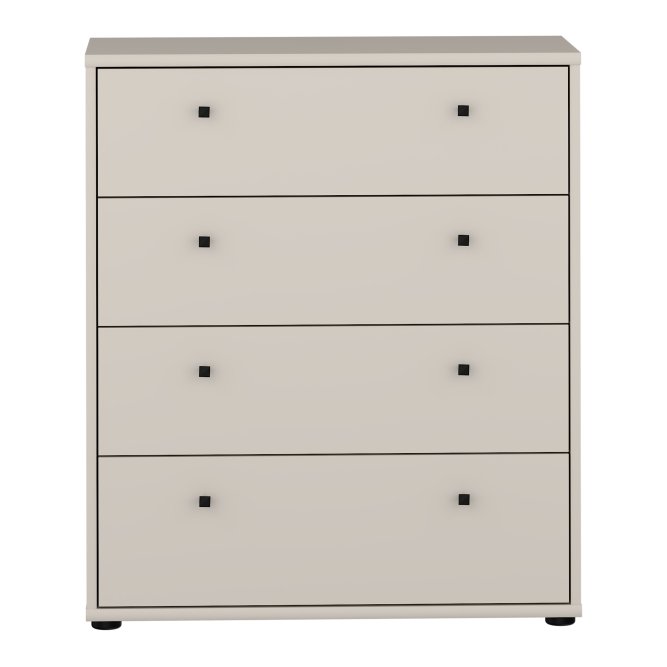 Komoda z szufladami w stylowym piaskowym kolorze doskonale wkomponuje się we wnętrze salonu, sypialni, biura czy też przedpokoju urządzone w stylu nowoczesnym, podkreślając unikatowy charakter wnętrza i zapewniając jednocześnie odpowiednią przestrzeń do przechowywania. Mebel posiada cztery pojemne szuflady, które pomieszczą mnóstwo różnych przedmiotów - od drobnych akcesoriów, po przez dokumenty, aż po różne elementy garderoby i tekstylia domowe. Szeroki blat komody będzie doskonałym miejscem na wyeksponowanie zdjęć, pamiątek z wakacji, ozdobnych świeczników, ceramiki czy roślin doniczkowych. Wyjątkowa kolorystyka i prosty styl mebla wprowadzi do wnętrza naturalność, przytulność i poczucie domowego ciepła. Zestawiając ją z innymi meblami z kolekcji stworzysz spójną aranżację.