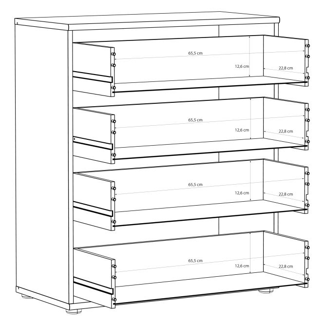 Komoda wyposażona w cztery szuflady o maksymalnym obciążeniu do 5 kg