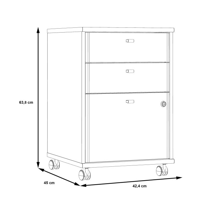 Ważniejsze dokumenty z pewnością mogą być przechowywane w kontenerze biurowym na kółkach. Kontenerek z tej kolekcji posiada dwie szuflady i zamykaną na zamek szafkę. Praktyczny kontener na kółkach zapewni odpowiednio dużo miejsca do przechowywania oraz idealnie skomponuje się z biurkami z tej samej kolekcji, tworząc z nimi elegancką aranżację.