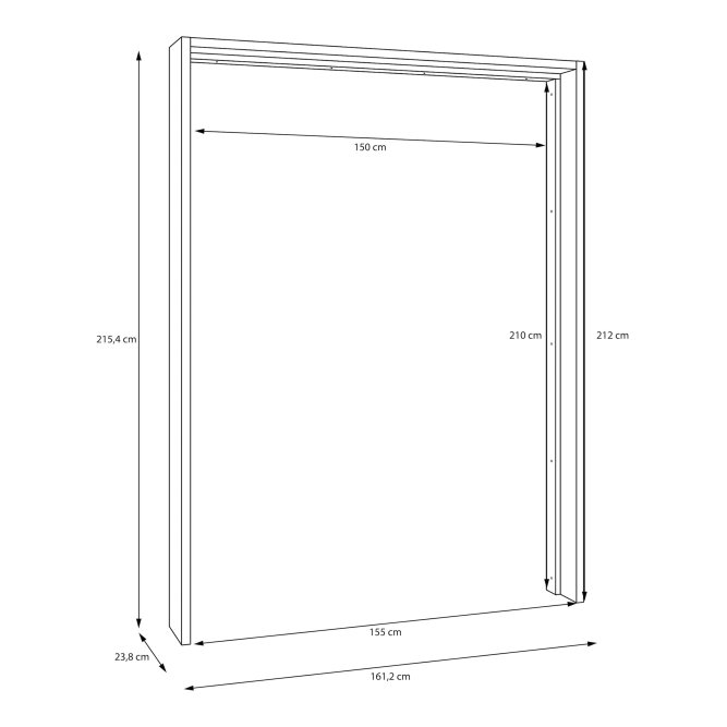 Listwa o wymiarach 161,2 cm szerokości, 215,4 cm wysokości oraz 23,8 cm głębokości