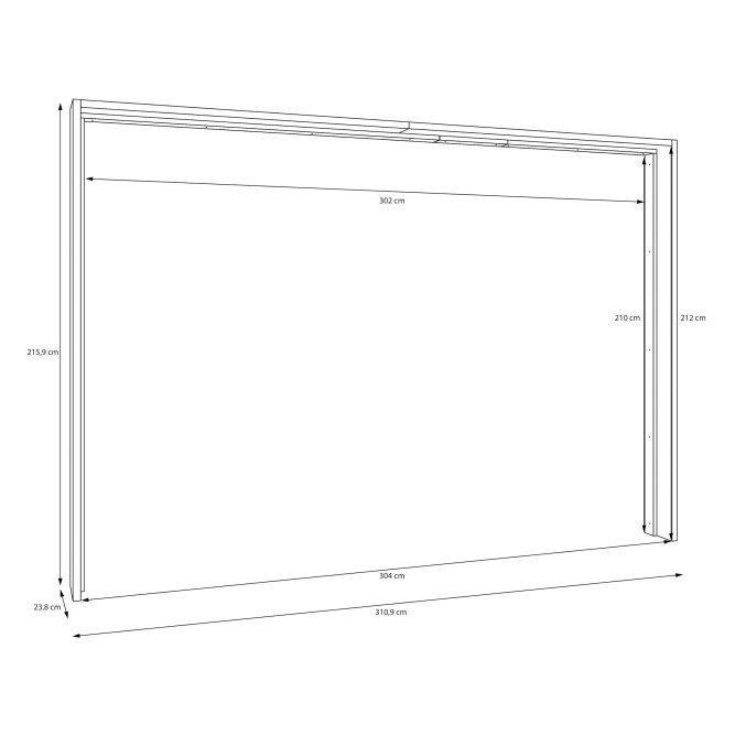 Listwa o wymiarach 310,9 cm szerokości, 215,9 cm wysokości oraz 23,8 cm głębokości idealnie pasuje do szafy 299,8 cm