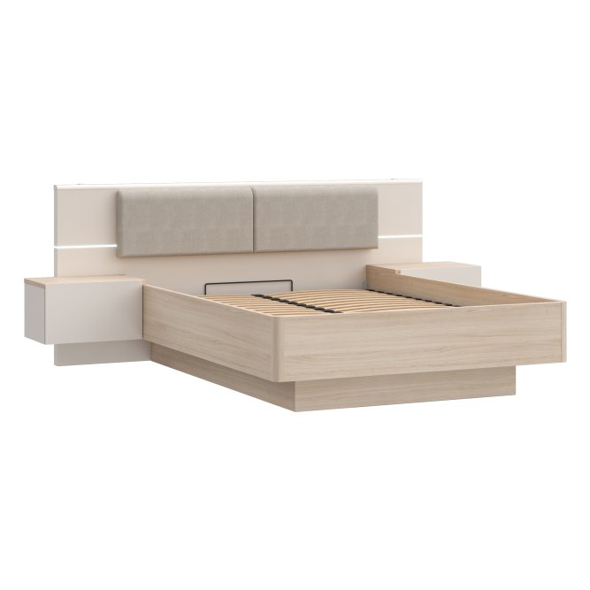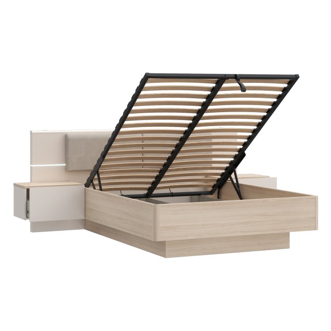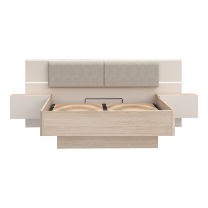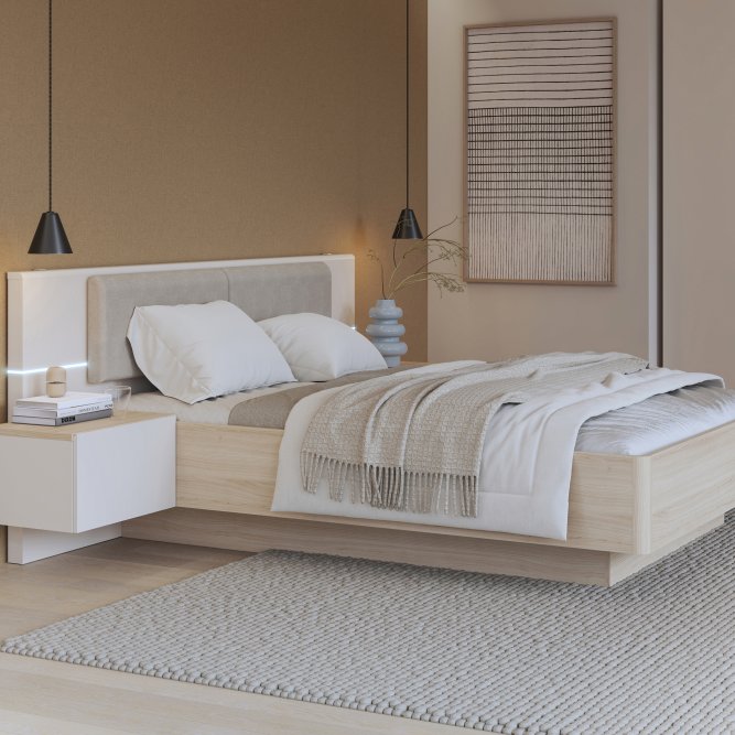 Stelaż łóżka ze zintegrowanymi szafkami dopełnia kolekcję PANOPTIK. Subtelna, otulająca linia zachwyci tych, którzy ponad wszystko cenią relaks i harmonię. Dwuosobowe łóżko możesz ustawić w małej i średniej sypialni, w której nie może go zabraknąć. Tym, co wyróżnia ten model jest podnoszony stelaż, pod którym kryje sie praktyczny pojemnik na pościel. Zintegrowane szafki ułatwią przechowywanie kosmetyków lub leków. Dzięki dołączonemu oświetleniu nie musisz szukać miejsca na blatach szafki na lampkę nocną. Tapicerowany zagłówek możesz traktować jako wygodne podparcie podczas wieczornej lektury, ale też jako ochrona ściany przed zabrudzeniem. Połącz łóżko 140 PANOPTIK z innymi meblami z kolekcji, tworząc spójną aranżację sypialni.