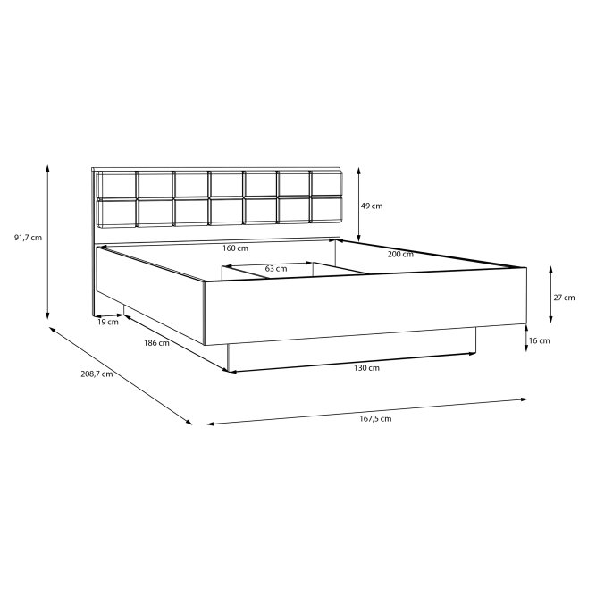 Do łóżka dokup materac o wymiarach: 160x200 cm i grubości: 14-24 cm