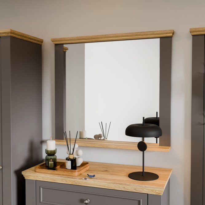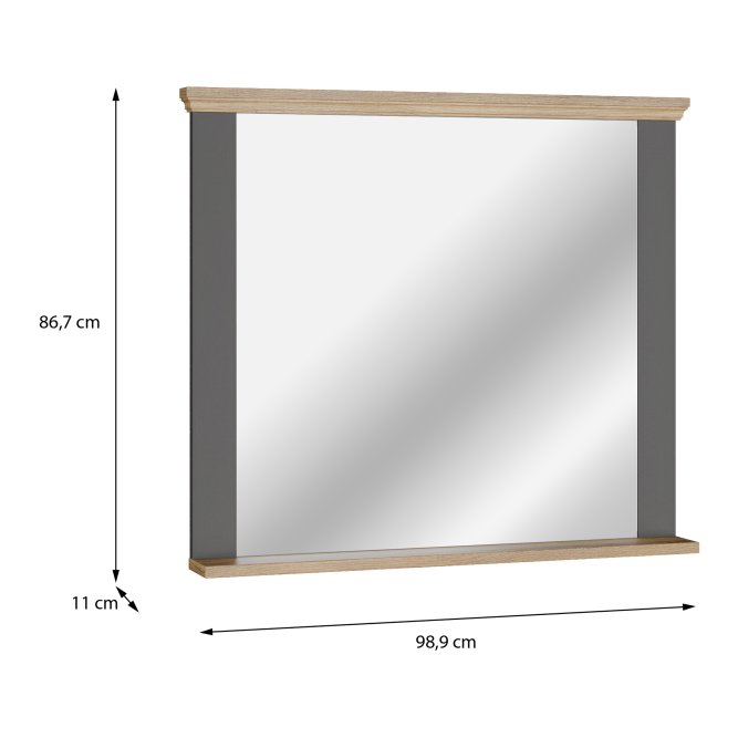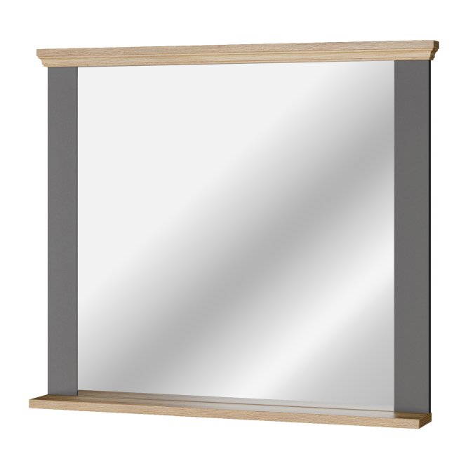 Lustro PONTYPOOL — eleganckie, szerokie lustro w ramie łączącej szary korpus z dekoracyjnymi listwami w kolorze Dąb Mauvella. Klasyczna forma z delikatnym zdobieniem górnej i dolnej listwy nadaje wnętrzu ciepły, ale jednocześnie uporządkowany charakter. Idealne do zastosowania nad komodą, konsolą lub w przedpokoju — funkcjonalne i dekoracyjne uzupełnienie aranżacji.