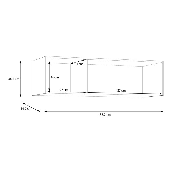 - Wymiary: szerokość 133,2 cm, wysokość 38,1 cm, głębokość 54,2 cm