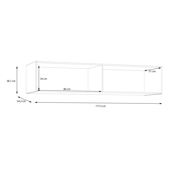 - Wymiary: szerokość 177,5 cm, wysokość 38,1 cm, głębokość 54,2 cm