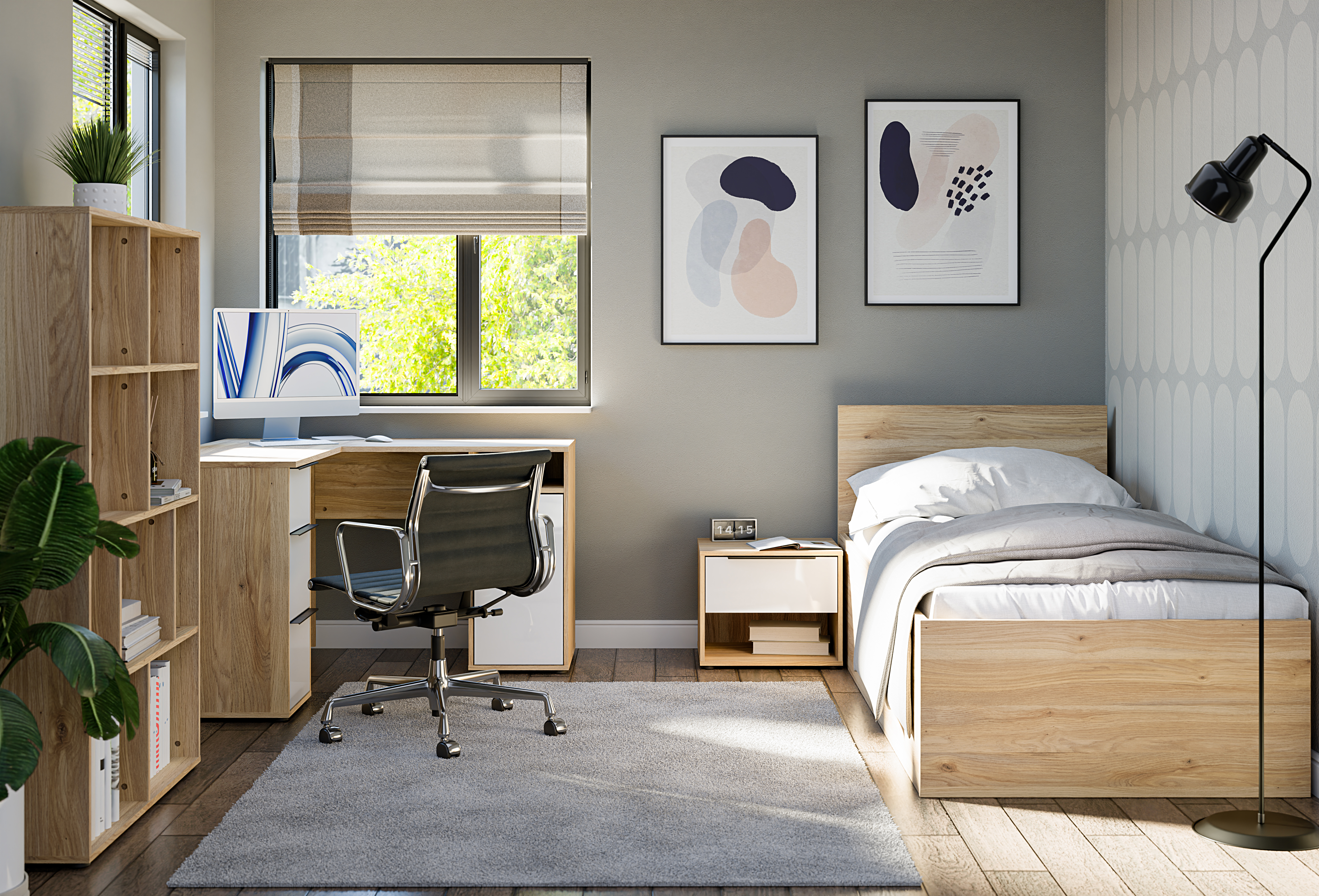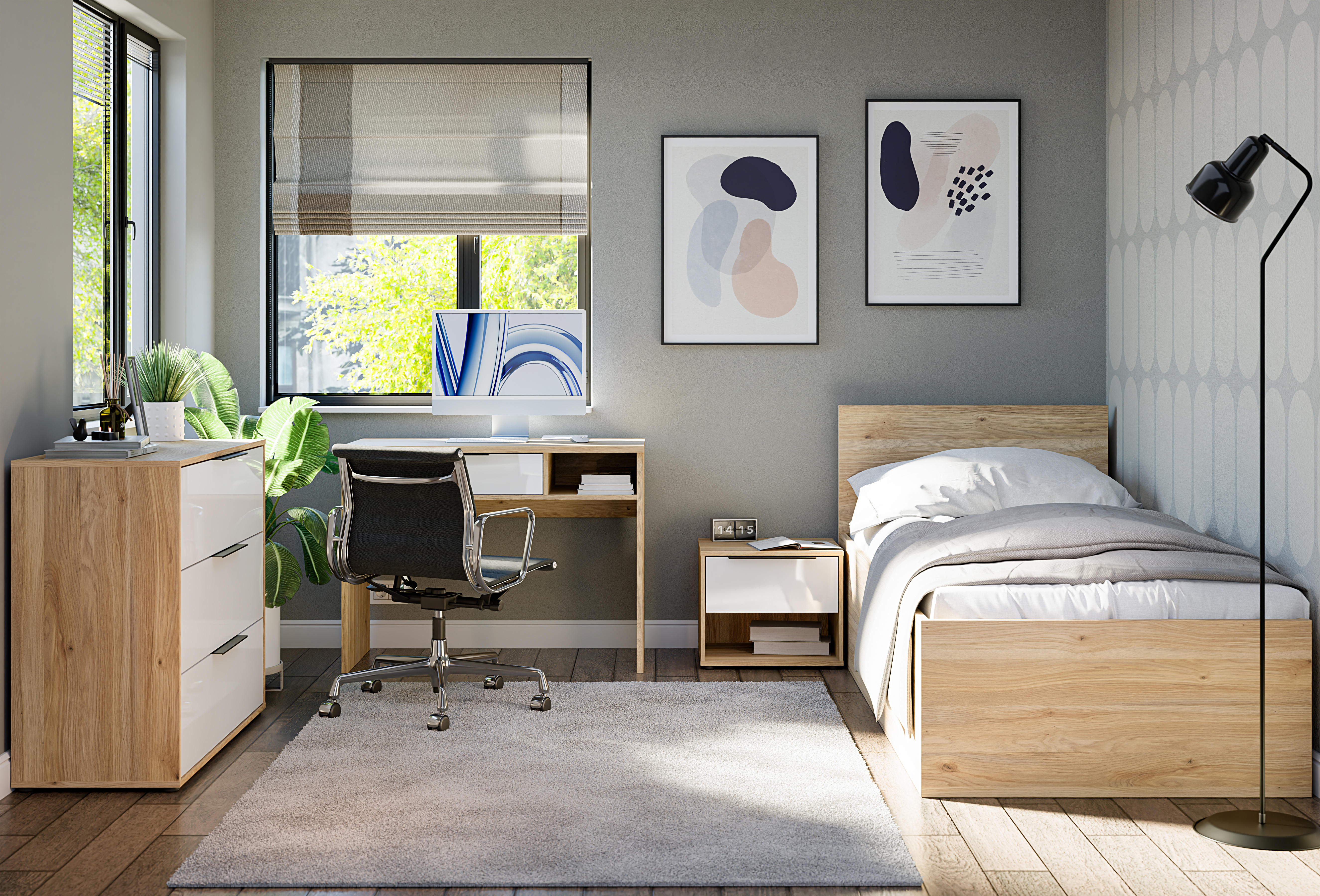 Stwórz w sypialni oazę relaksu, regeneracji i spokoju z kolekcją ORKNEY. Wśród mebli nie zabrakło wygodnego łóżka, szafek nocnych, przestronnej szafy z szufladami i komody. W opcji dostępne oświetlenie do szafek nocnych. Całość utrzymana w dekorze Dąb Mauvella, dzięki czemu aranżacja nabierze charakteru i ciepła.