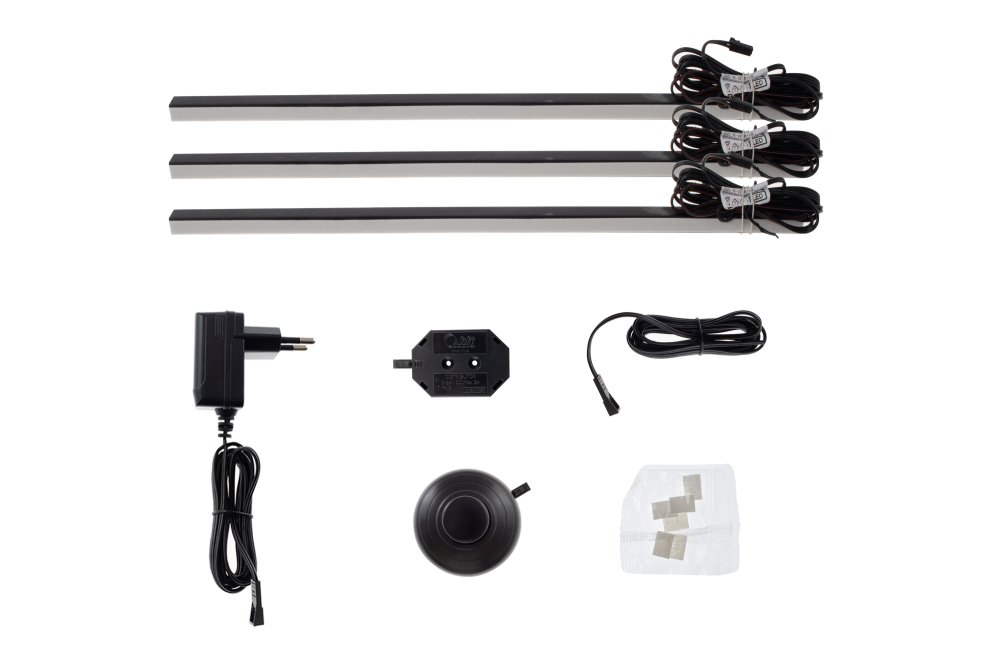 3-punktowe oświetlenie LED stanowi doskonały dodatek, który wyeksponuje meble i nada wnętrzu niepowtarzalnego klimatu. Białe, neutralne światło doskonale podkreśli podświetlane przedmioty oraz nada im klasy. Oświetlenie pasuje do regału 90 cm z kolekcji EUFEMIUS.