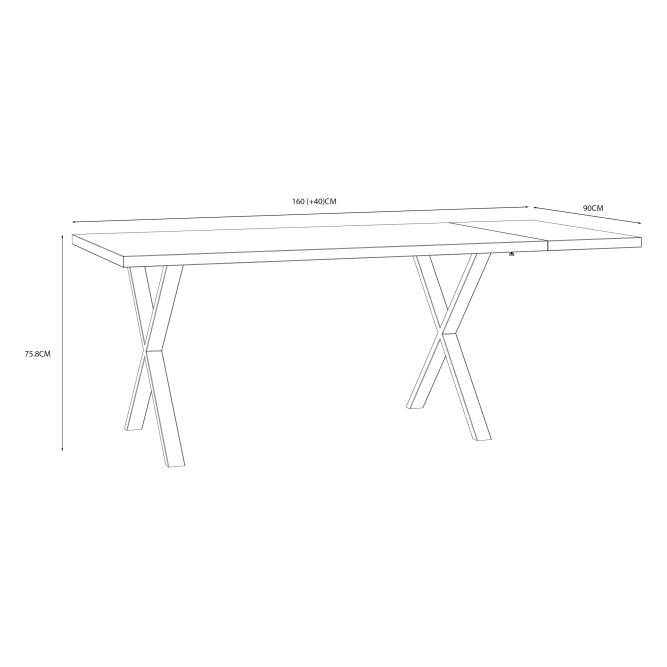 - Wymiary stołu to 160 cm x 75,8 cm x 90 cm