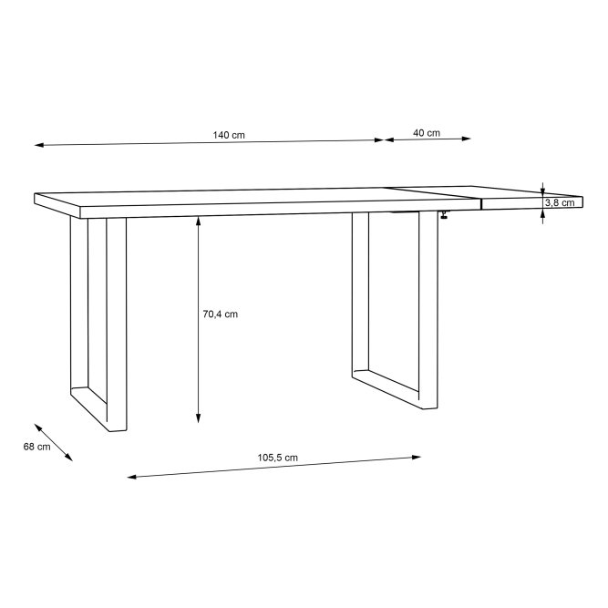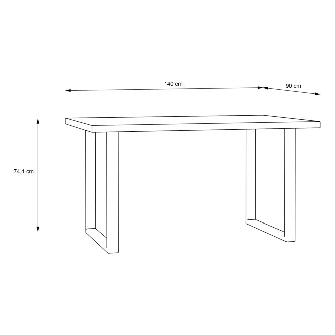 - Stół z nogami ma wymiary: 140 cm szerokości, 90 cm głębokości i 74,1 cm wysokości