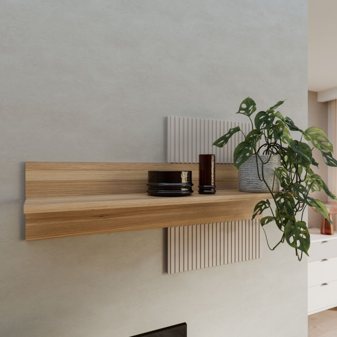Półka wisząca doskonale sprawdzi się zawieszona nad wąską komodą lub szafką RTV. Prosta i ponadczasowa tworzy solidną bazę na dekoracje, rośliny, zdjęcia lub książki. Połącz półkę SERAVEL z pozostałymi elementami kolekcji, tworząc wyjątkowe wnętrze.