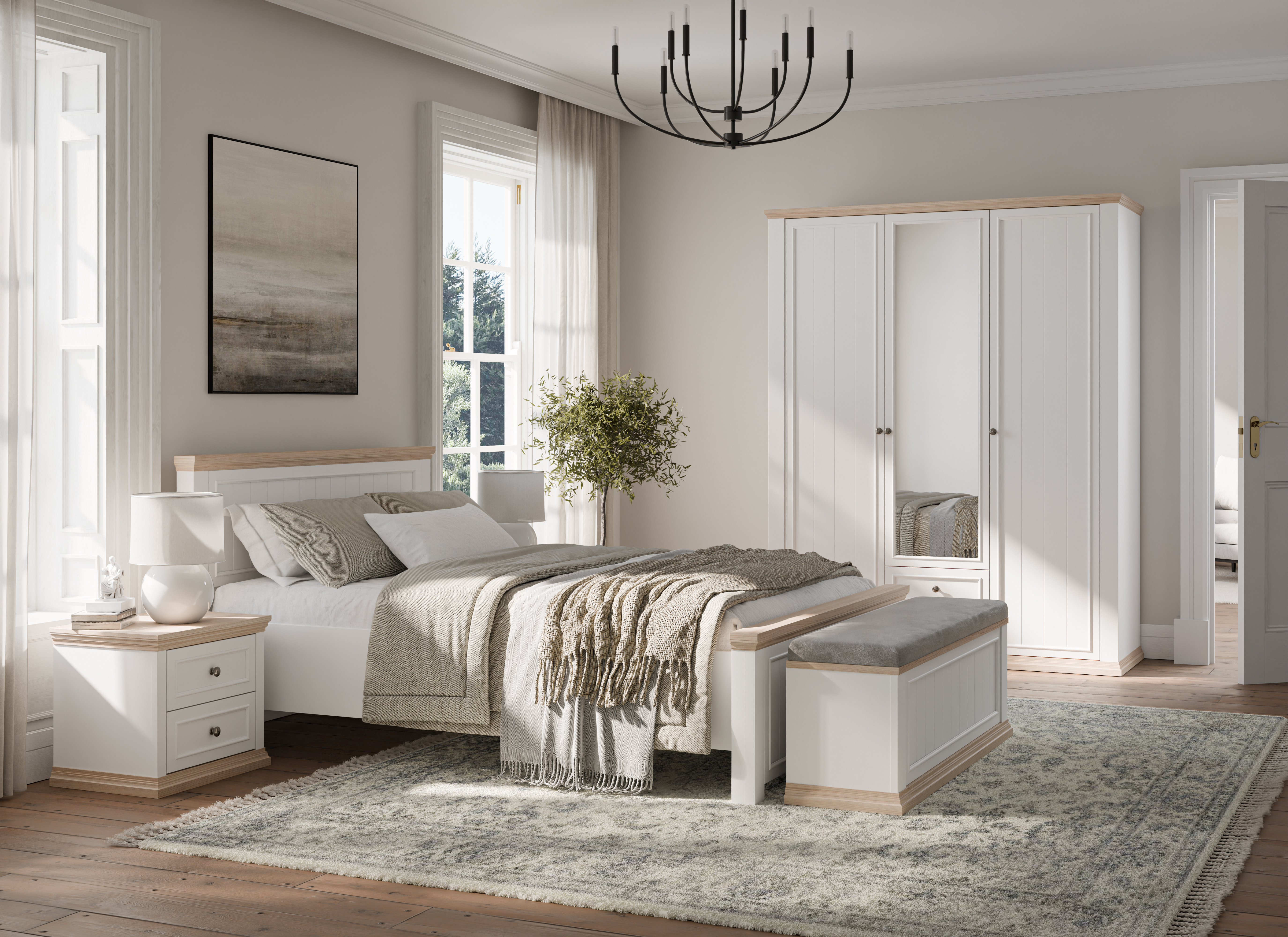 Ekskluzywna kolekcja PONTYPOOL do salonu i jadalni stworzona została z myślą o wymagających klientach, którzy cenią ponadczasową elegancję i funkcjonalność w najlepszym wydaniu. W jej skład wchodzą m.in. przestronny kredens, imponujący regał o szerokości 2 metrów, urocze witryny, stoliki kawowe, rozkładane stoły oraz szafki RTV – wszystko, czego potrzeba do kompleksowego urządzenia stylowego wnętrza. Meble dostępne są w dwóch dopracowanych wersjach kolorystycznych: subtelnej bieli z akcentami w kolorze drewna oraz wyrazistej czerni ocieplonej drewnianym dekorem. Eleganckie wykończenia, przemyślane detale i spójna stylistyka sprawiają, że kolekcja doskonale wpisuje się zarówno w nowoczesne, jak i bardziej klasyczne aranżacje.