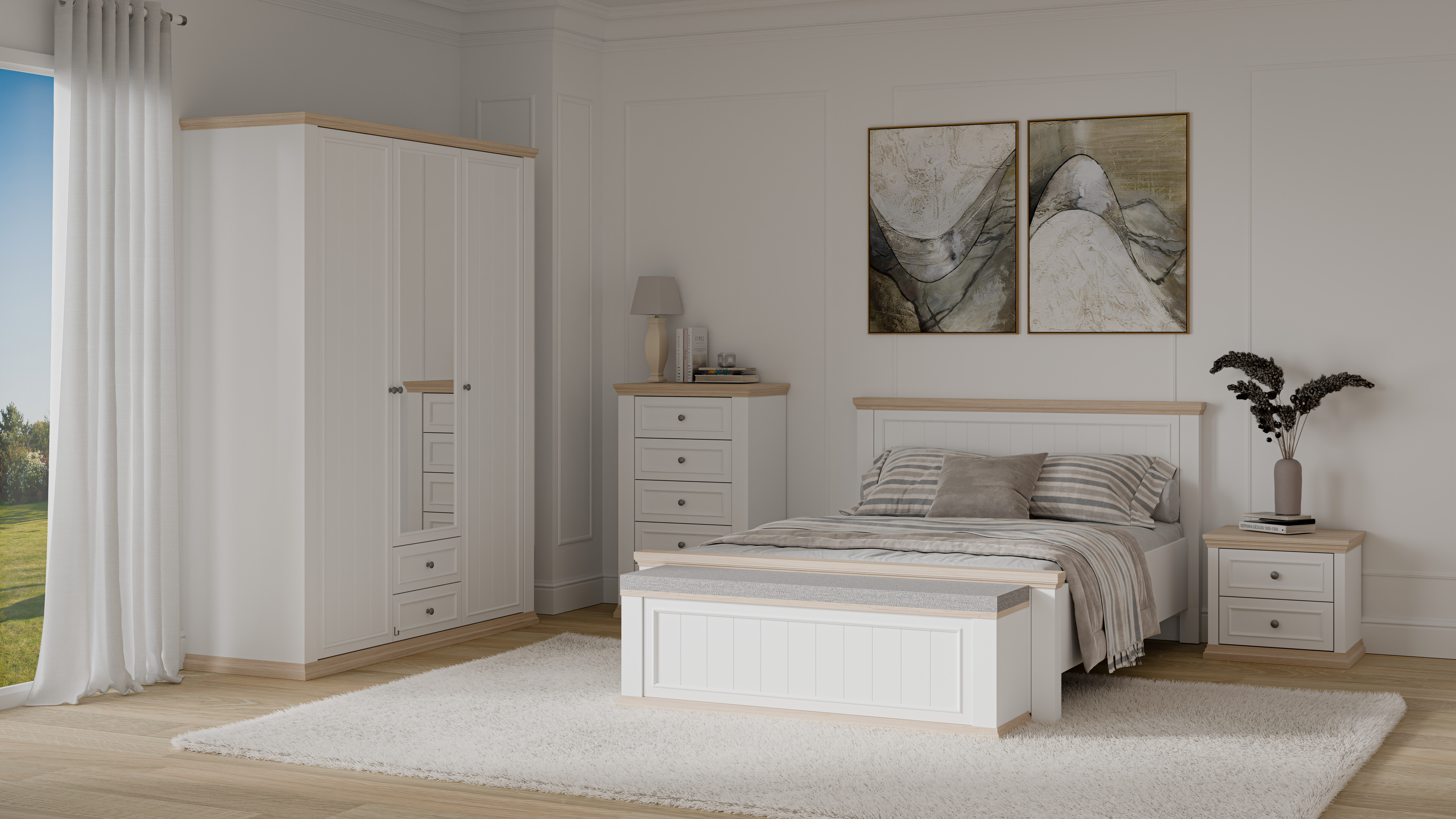 Ekskluzywna kolekcja PONTYPOOL do salonu i jadalni stworzona została z myślą o wymagających klientach, którzy cenią ponadczasową elegancję i funkcjonalność w najlepszym wydaniu. W jej skład wchodzą m.in. przestronny kredens, imponujący regał o szerokości 2 metrów, urocze witryny, stoliki kawowe, rozkładane stoły oraz szafki RTV – wszystko, czego potrzeba do kompleksowego urządzenia stylowego wnętrza. Meble dostępne są w dwóch dopracowanych wersjach kolorystycznych: subtelnej bieli z akcentami w kolorze drewna oraz wyrazistej czerni ocieplonej drewnianym dekorem. Eleganckie wykończenia, przemyślane detale i spójna stylistyka sprawiają, że kolekcja doskonale wpisuje się zarówno w nowoczesne, jak i bardziej klasyczne aranżacje.