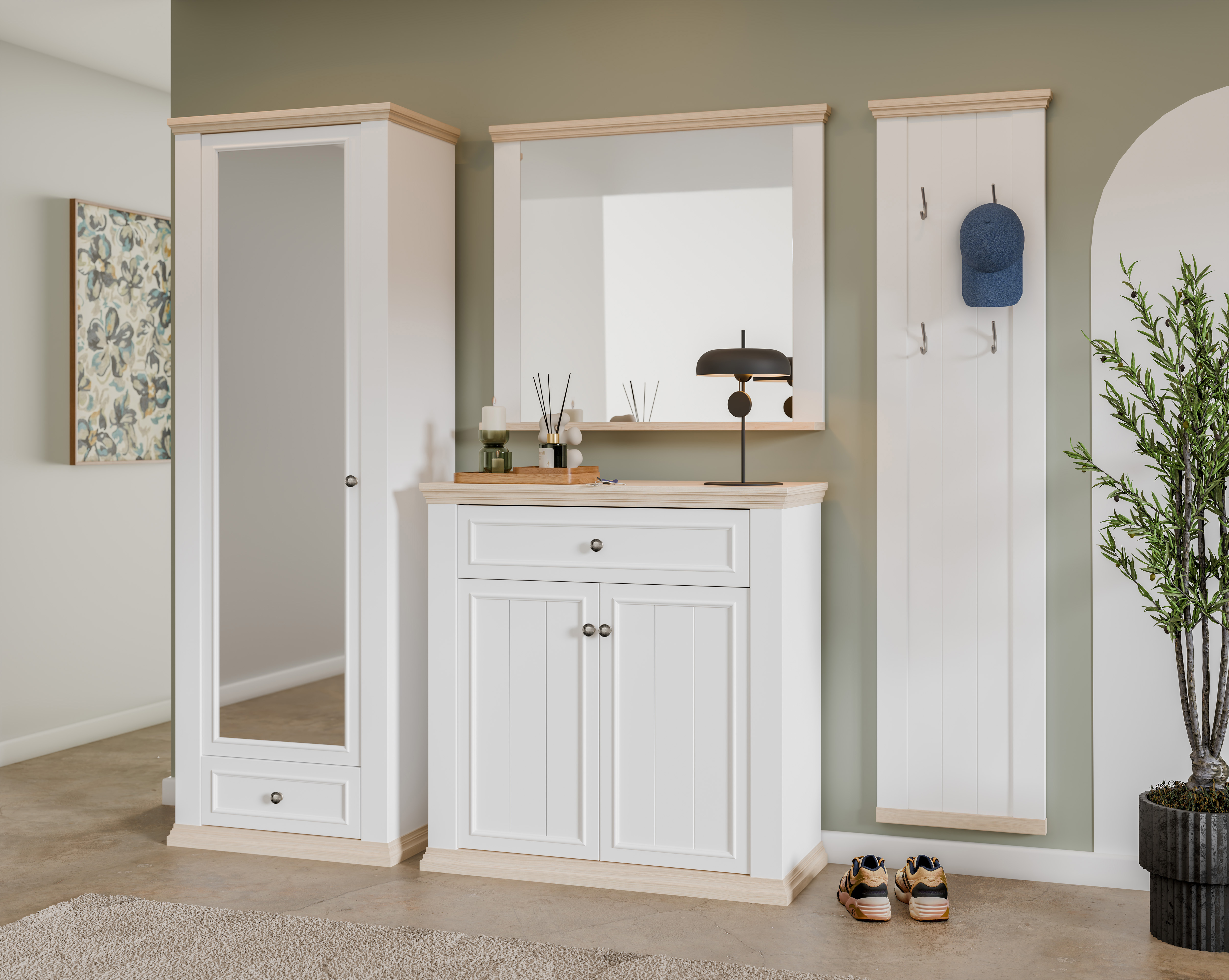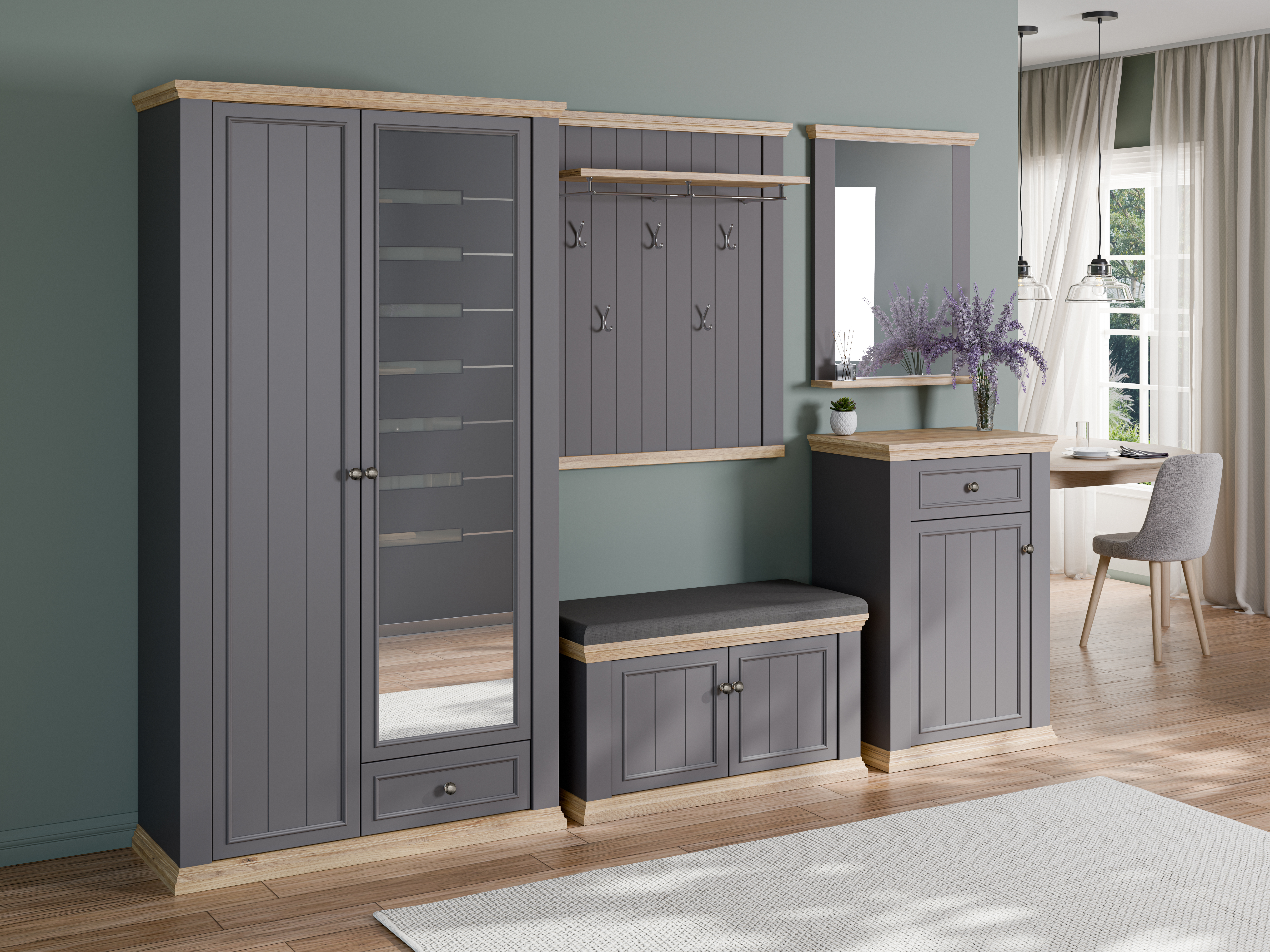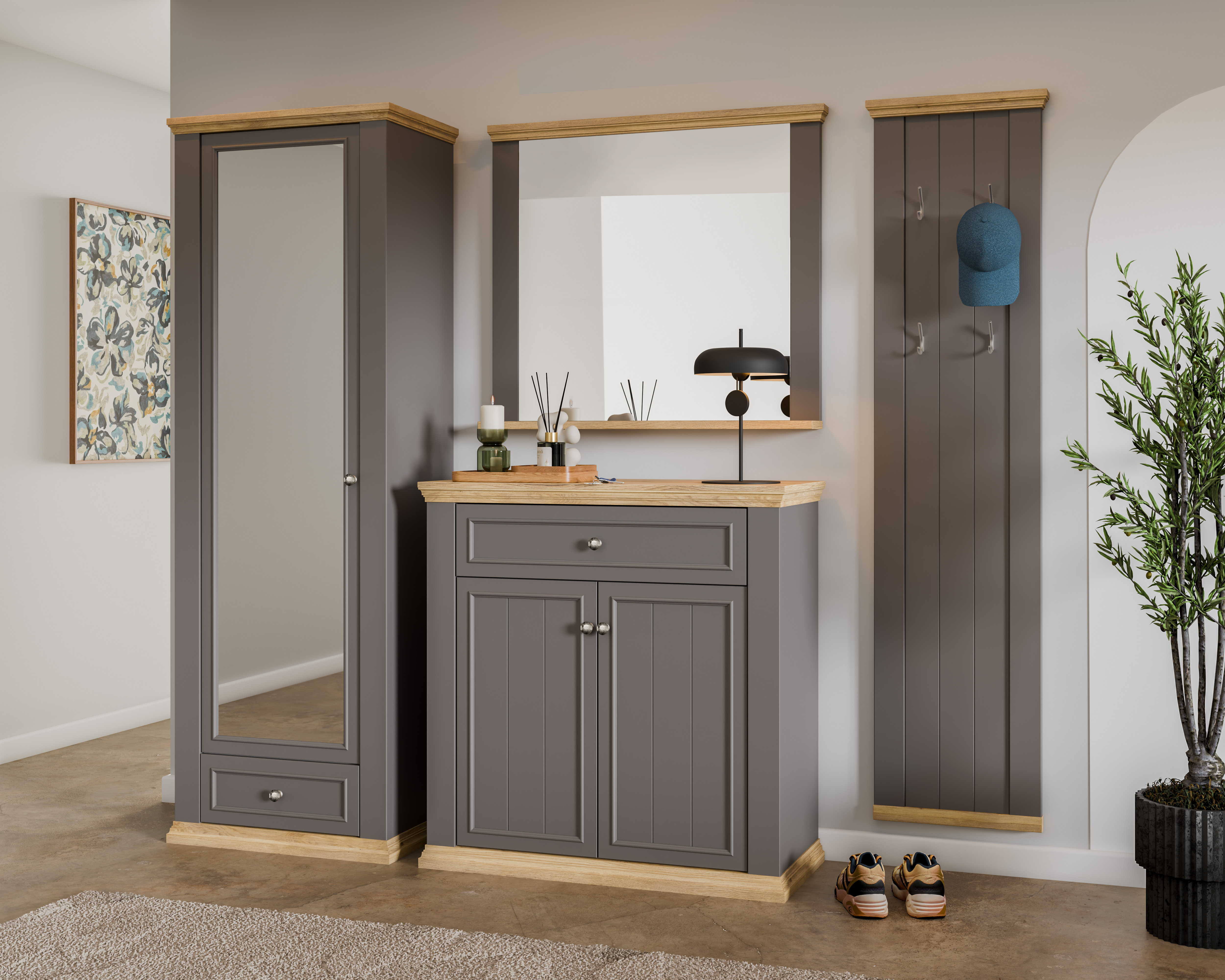 Ekskluzywna kolekcja PONTYPOOL do salonu i jadalni stworzona została z myślą o wymagających klientach, którzy cenią ponadczasową elegancję i funkcjonalność w najlepszym wydaniu. W jej skład wchodzą m.in. przestronny kredens, imponujący regał o szerokości 2 metrów, urocze witryny, stoliki kawowe, rozkładane stoły oraz szafki RTV – wszystko, czego potrzeba do kompleksowego urządzenia stylowego wnętrza. Meble dostępne są w dwóch dopracowanych wersjach kolorystycznych: subtelnej bieli z akcentami w kolorze drewna oraz wyrazistej czerni ocieplonej drewnianym dekorem. Eleganckie wykończenia, przemyślane detale i spójna stylistyka sprawiają, że kolekcja doskonale wpisuje się zarówno w nowoczesne, jak i bardziej klasyczne aranżacje.
